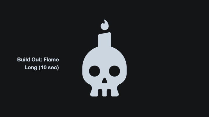 As you may have guessed by now, sound effects delight me. One of the things about them that delight me: the three timings of the Flame effect not only have a different look, but they also each suggest a different sound.