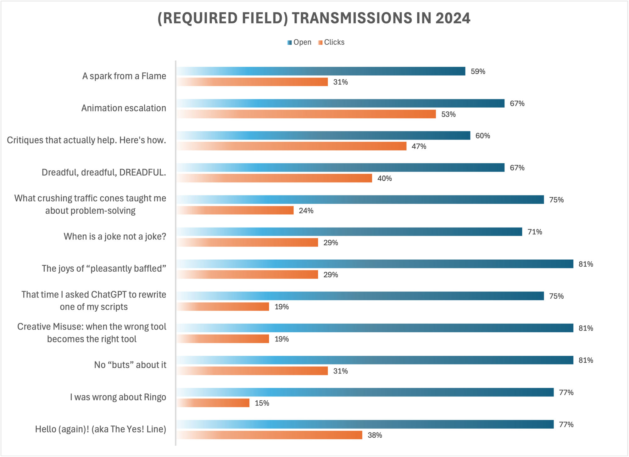 So, yeah, Opens is trending down. Admittedly, A spark from a flame was sent in at the beginning of full holiday mayhem, when we all were just trying to make it to January. So that skews the trend a little.